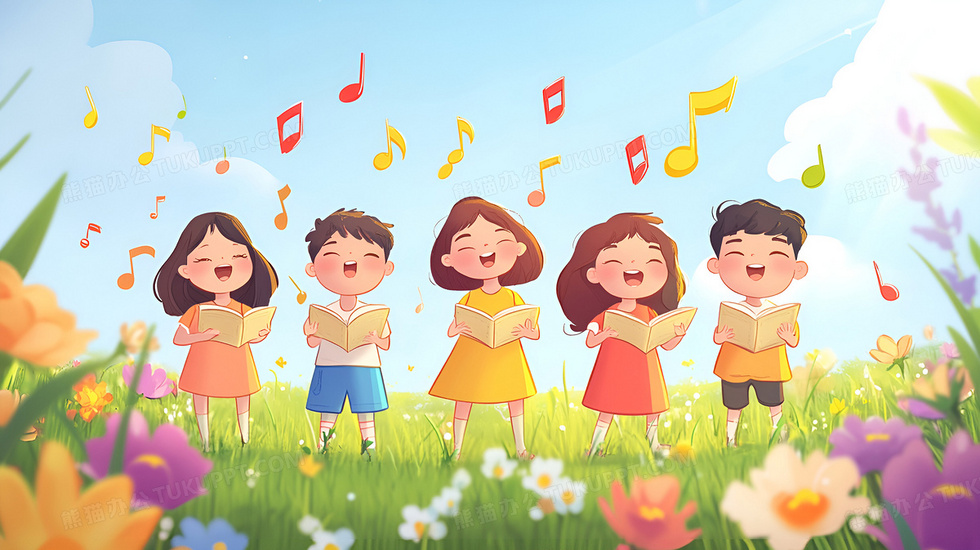 本作品内容为在草地上合唱的孩子们插画, 格式为 jpg, 大小1 MB, 图片尺寸为2912 x 1632, 源文件无水印, 欢迎使用熊猫办公。 如认为平台内容涉嫌侵权,可通过邮件:tousu@tukuppt.com提出书面通知,我们将及时处理。