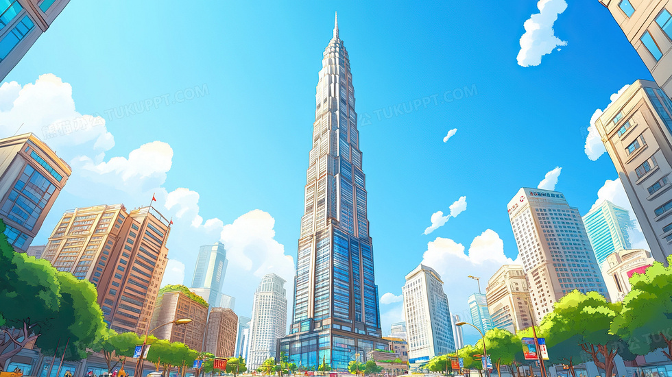 本作品内容为上海金茂大厦插画, 格式为 jpg, 大小4 MB, 图片尺寸为2912 x 1632, 源文件无水印, 欢迎使用熊猫办公。 如认为平台内容涉嫌侵权,可通过邮件:tousu@tukuppt.com提出书面通知,我们将及时处理。