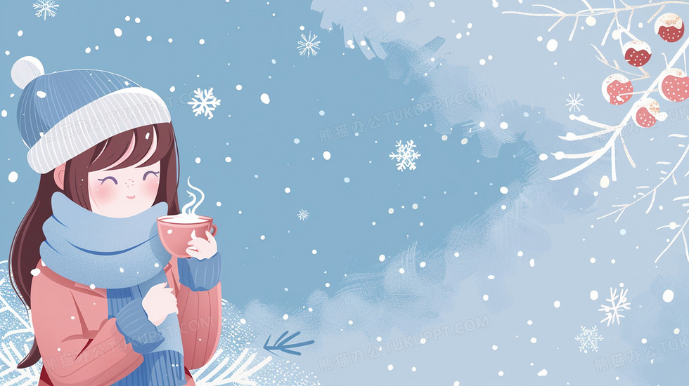 本作品内容为冬天女孩热奶茶茶饮温暖背景, 格式为 jpg, 大小3 MB, 图片尺寸为2912 x 1632, 作品中背景图片无需修改, 源文件无水印,可以直接使用, 欢迎使用熊猫办公。 如认为平台内容涉嫌侵权,可通过邮件:tousu@tukuppt.com提出书面通知,我们将及时处理。