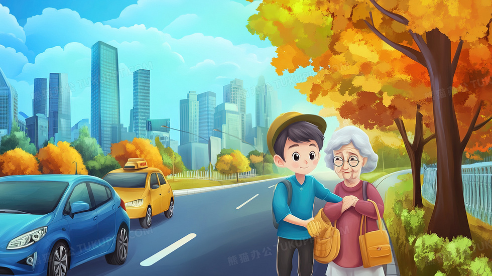 本作品内容为关爱关心老人扶老奶奶过马路的男孩插画, 格式为 jpg, 大小3 MB, 图片尺寸为2912 x 1632, 源文件无水印, 欢迎使用熊猫办公。 如认为平台内容涉嫌侵权,可通过邮件:tousu@tukuppt.com提出书面通知,我们将及时处理。