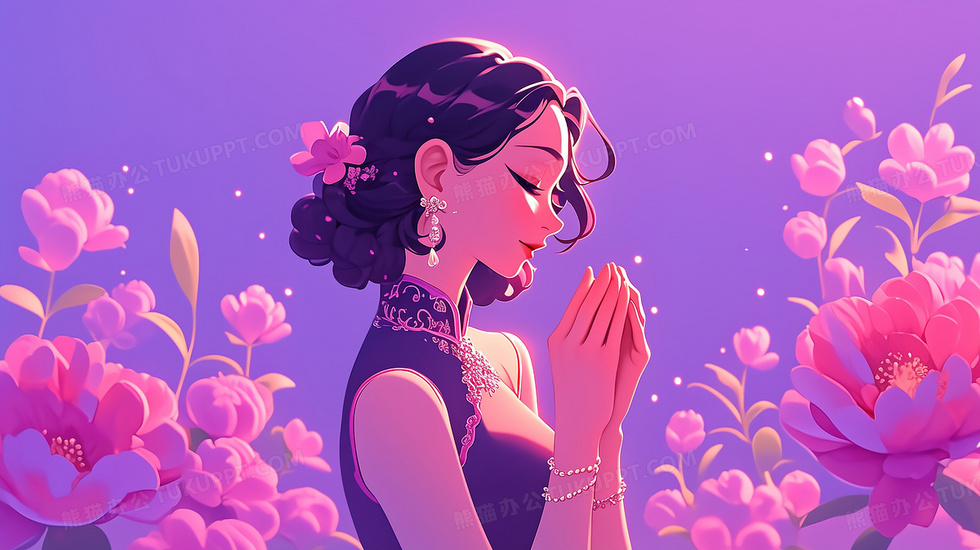 本作品内容为中国风紫色女人与牡丹花插画, 格式为 jpg, 大小2 MB, 图片尺寸为2912 x 1632, 源文件无水印, 欢迎使用熊猫办公。 如认为平台内容涉嫌侵权,可通过邮件:tousu@tukuppt.com提出书面通知,我们将及时处理。