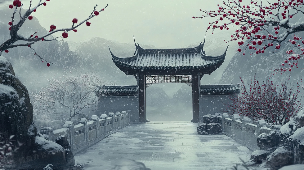 本作品内容为中国风建筑冬天雪地下雪场景插画, 格式为 jpg, 大小4 MB, 图片尺寸为2912 x 1632, 源文件无水印, 欢迎使用熊猫办公。 如认为平台内容涉嫌侵权,可通过邮件:tousu@tukuppt.com提出书面通知,我们将及时处理。