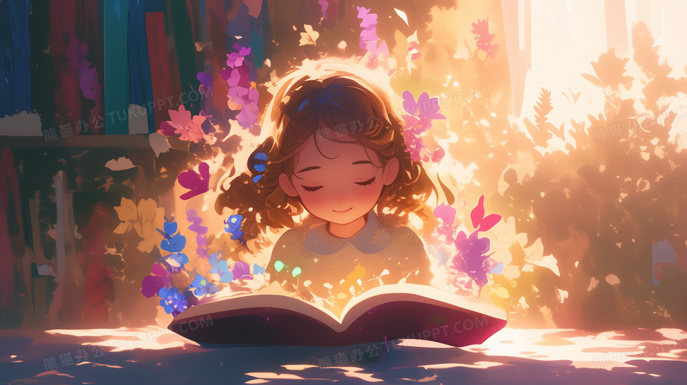 本作品内容为小女孩沉静在奇幻花草书本世界中创意插画, 格式为 jpg, 大小6 MB, 图片尺寸为2912 x 1632, 源文件无水印, 欢迎使用熊猫办公。 如认为平台内容涉嫌侵权,可通过邮件:tousu@tukuppt.com提出书面通知,我们将及时处理。