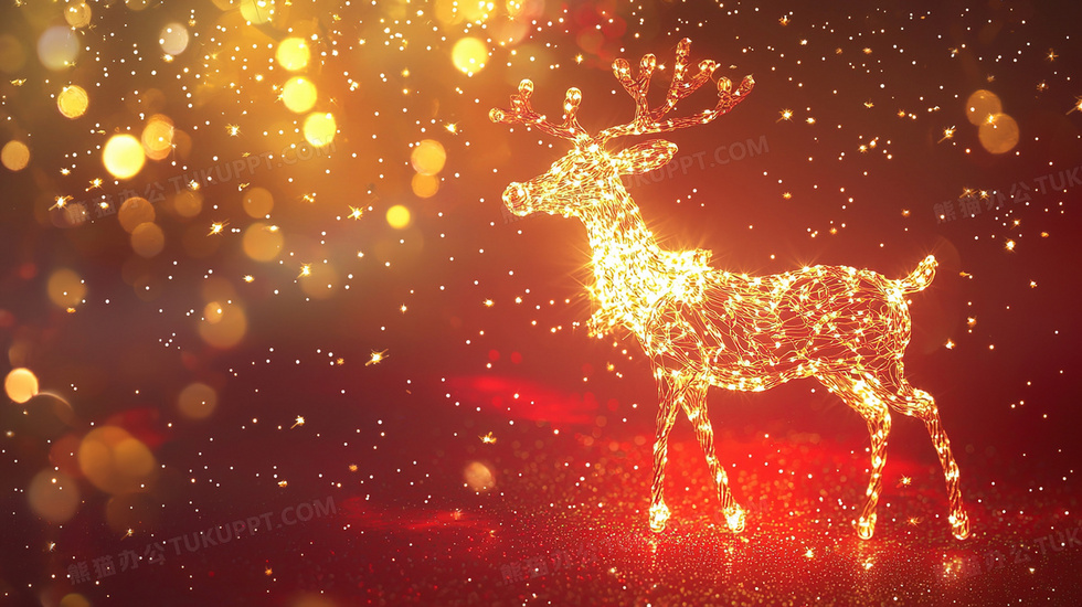 本作品内容为简约金色光斑粒子麋鹿背景, 格式为 jpg, 大小3 MB, 图片尺寸为2912 x 1632, 作品中背景图片无需修改, 源文件无水印,可以直接使用, 欢迎使用熊猫办公。 如认为平台内容涉嫌侵权,可通过邮件:tousu@tukuppt.com提出书面通知,我们将及时处理。