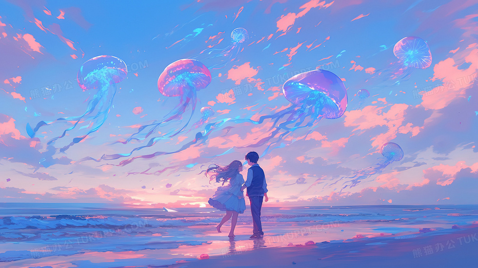 本作品内容为卡通蓝天白云女孩男孩海边散步插画, 格式为 jpg, 大小3 MB, 图片尺寸为2912 x 1632, 源文件无水印, 欢迎使用熊猫办公。 如认为平台内容涉嫌侵权,可通过邮件:tousu@tukuppt.com提出书面通知,我们将及时处理。