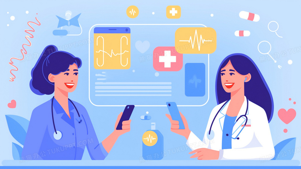 本作品内容为医院医生线上会诊医疗插画, 格式为 jpg, 大小2 MB, 图片尺寸为2912 x 1632, 源文件无水印, 欢迎使用熊猫办公。 如认为平台内容涉嫌侵权,可通过邮件:tousu@tukuppt.com提出书面通知,我们将及时处理。
