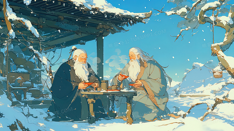 本作品内容为寒冷冬天两个古代老翁雪中饮酒插画, 格式为 jpg, 大小3 MB, 图片尺寸为2912 x 1632, 源文件无水印, 欢迎使用熊猫办公。 如认为平台内容涉嫌侵权,可通过邮件:tousu@tukuppt.com提出书面通知,我们将及时处理。