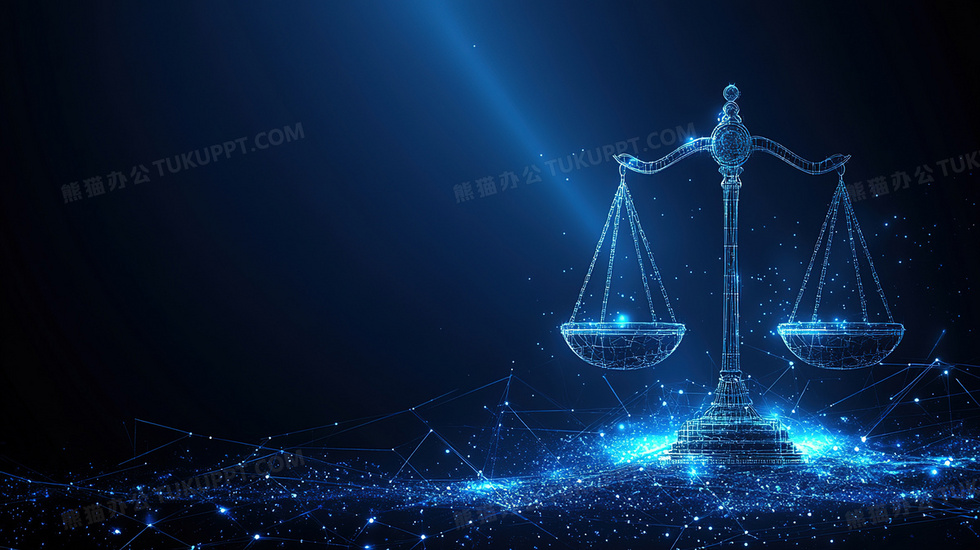 本作品内容为科技风法律天平背景, 格式为 jpg, 大小3 MB, 图片尺寸为2912 x 1632, 作品中背景图片无需修改, 源文件无水印,可以直接使用, 欢迎使用熊猫办公。 如认为平台内容涉嫌侵权,可通过邮件:tousu@tukuppt.com提出书面通知,我们将及时处理。