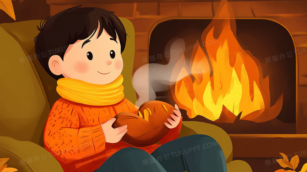 本作品内容为暖炉旁吃着热气腾腾的烤地瓜人物插画, 格式为 jpg, 大小3 MB, 图片尺寸为2912 x 1632, 源文件无水印, 欢迎使用熊猫办公。 如认为平台内容涉嫌侵权,可通过邮件:tousu@tukuppt.com提出书面通知,我们将及时处理。