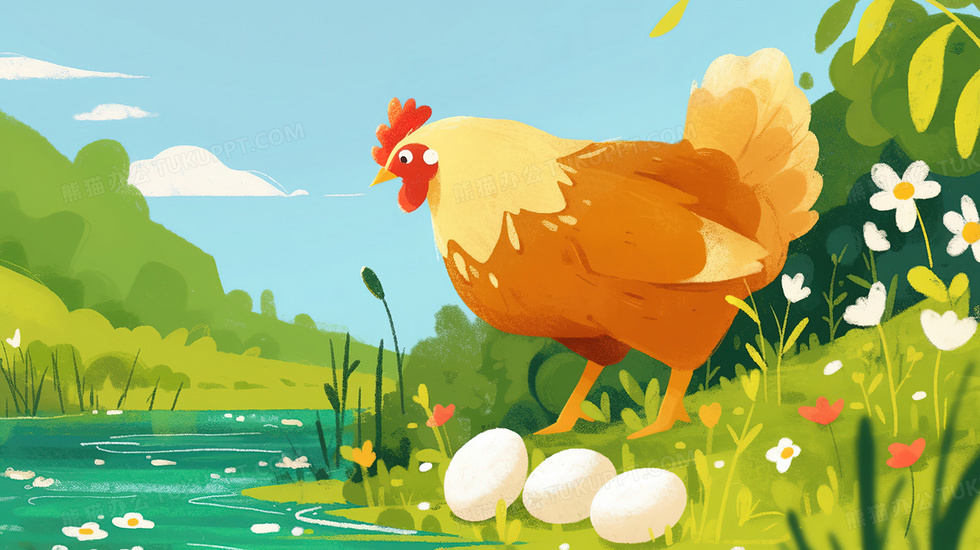 本作品内容为蓝天白云草地溜达的母鸡插画, 格式为 jpg, 大小3 MB, 图片尺寸为2912 x 1632, 源文件无水印, 欢迎使用熊猫办公。 如认为平台内容涉嫌侵权,可通过邮件:tousu@tukuppt.com提出书面通知,我们将及时处理。