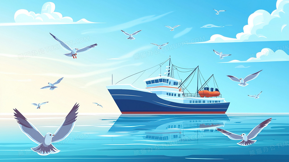 本作品内容为蓝天白云海上轮船飞鸟插画, 格式为 jpg, 大小2 MB, 图片尺寸为2912 x 1632, 源文件无水印, 欢迎使用熊猫办公。 如认为平台内容涉嫌侵权,可通过邮件:tousu@tukuppt.com提出书面通知,我们将及时处理。
