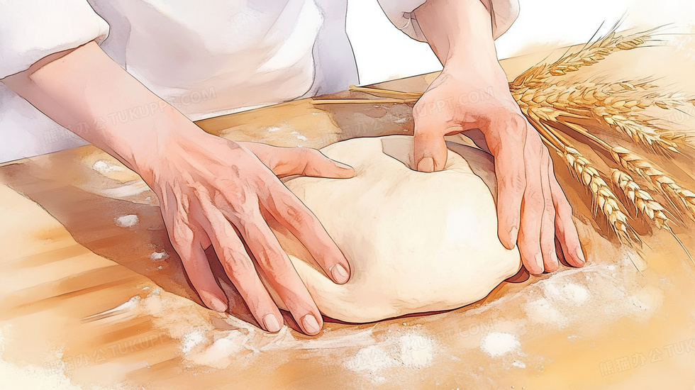 本作品内容为木板上和面的手部特写创意插画, 格式为 jpg, 大小3 MB, 图片尺寸为2912 x 1632, 源文件无水印, 欢迎使用熊猫办公。 如认为平台内容涉嫌侵权,可通过邮件:tousu@tukuppt.com提出书面通知,我们将及时处理。