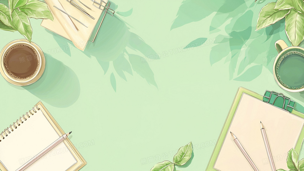 本作品内容为俯视桌面文具植物咖啡创意背景, 格式为 jpg, 大小2 MB, 图片尺寸为2912 x 1632, 作品中背景图片无需修改, 源文件无水印,可以直接使用, 欢迎使用熊猫办公。 如认为平台内容涉嫌侵权,可通过邮件:tousu@tukuppt.com提出书面通知,我们将及时处理。