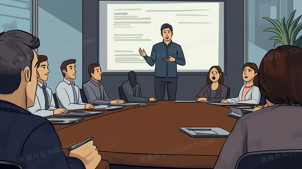 本作品内容为商务办公团队开会合作插画, 格式为 jpg, 大小2 MB, 图片尺寸为2912 x 1632, 源文件无水印, 欢迎使用熊猫办公。 如认为平台内容涉嫌侵权,可通过邮件:tousu@tukuppt.com提出书面通知,我们将及时处理。