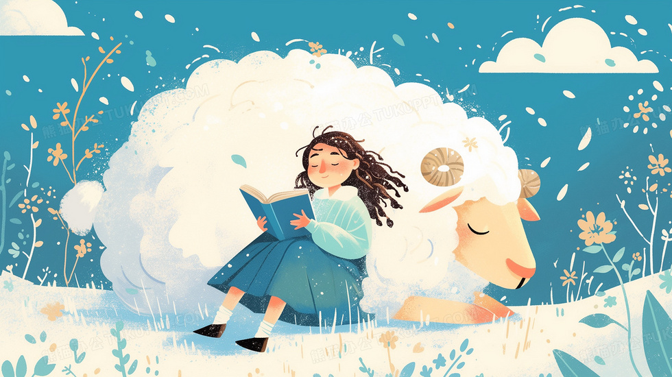 本作品内容为小女孩和拟人化的小绵羊在地上看书动物拟人儿童绘本插画, 格式为 jpg, 大小5 MB, 图片尺寸为2912 x 1632, 源文件无水印, 欢迎使用熊猫办公。 如认为平台内容涉嫌侵权,可通过邮件:tousu@tukuppt.com提出书面通知,我们将及时处理。
