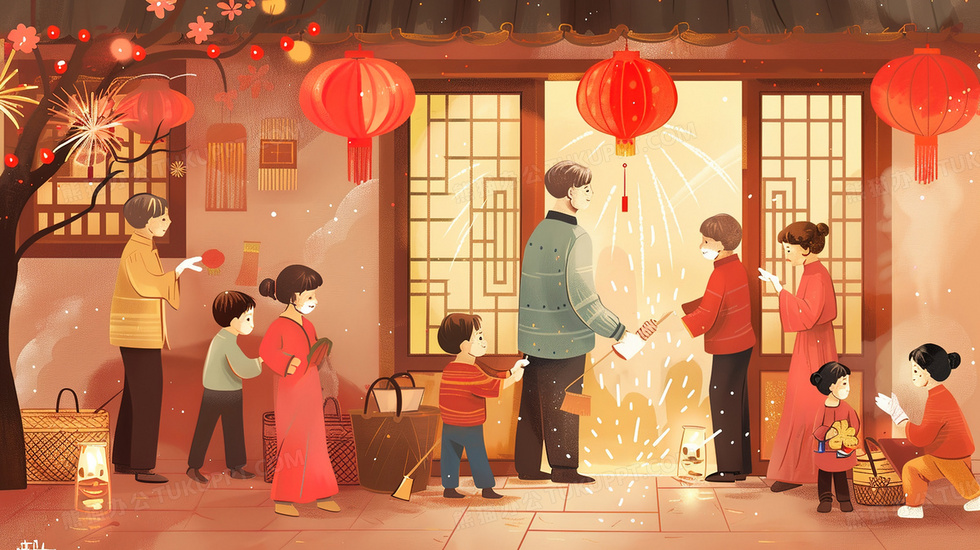 本作品内容为小年打扫卫生放烟花的一家人温馨插画, 格式为 jpg, 大小3 MB, 图片尺寸为2912 x 1632, 源文件无水印, 欢迎使用熊猫办公。 如认为平台内容涉嫌侵权,可通过邮件:tousu@tukuppt.com提出书面通知,我们将及时处理。