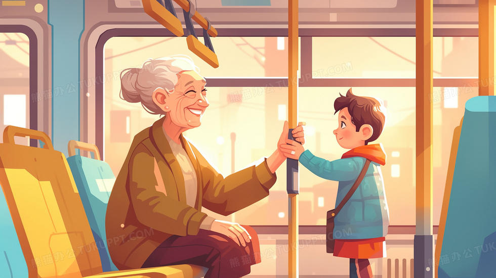 本作品内容为公交车男孩让座给老奶奶卡通插画, 格式为 jpg, 大小2 MB, 图片尺寸为2912 x 1632, 源文件无水印, 欢迎使用熊猫办公。 如认为平台内容涉嫌侵权,可通过邮件:tousu@tukuppt.com提出书面通知,我们将及时处理。
