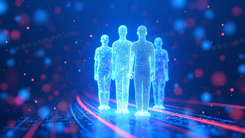本作品内容为人物光效科技AI背景, 格式为 jpg, 大小6 MB, 图片尺寸为3072 x 1728, 作品中背景图片无需修改, 源文件无水印,可以直接使用, 欢迎使用熊猫办公。 如认为平台内容涉嫌侵权,可通过邮件:tousu@tukuppt.com提出书面通知,我们将及时处理。