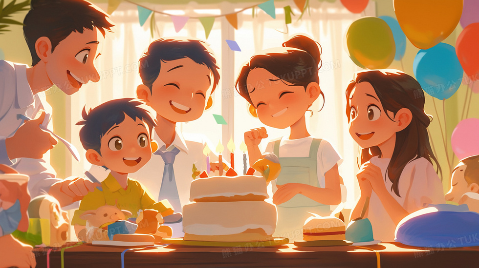 本作品内容为幸福一家人给小男孩庆祝过生日温馨插画, 格式为 jpg, 大小2 MB, 图片尺寸为2912 x 1632, 源文件无水印, 欢迎使用熊猫办公。 如认为平台内容涉嫌侵权,可通过邮件:tousu@tukuppt.com提出书面通知,我们将及时处理。