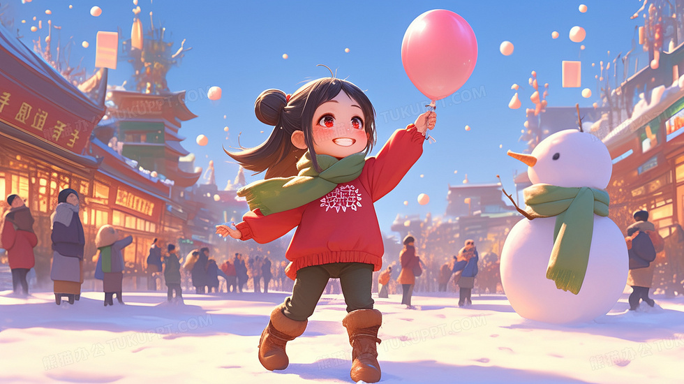 本作品内容为冬季穿厚毛衣围围巾雪地手拿气球女孩插画, 格式为 jpg, 大小2 MB, 图片尺寸为2912 x 1632, 源文件无水印, 欢迎使用熊猫办公。 如认为平台内容涉嫌侵权,可通过邮件:tousu@tukuppt.com提出书面通知,我们将及时处理。