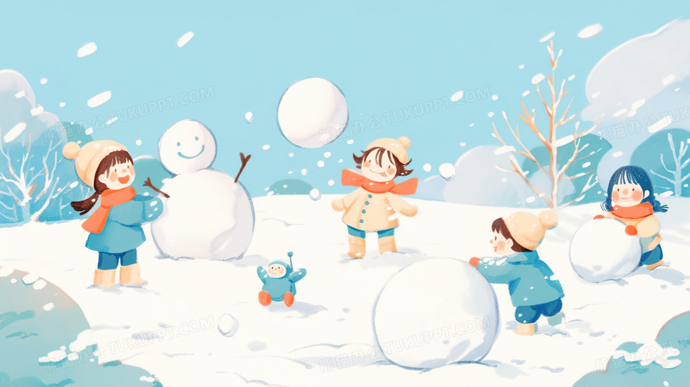 本作品内容为冬天雪地玩耍堆雪人的小朋友插画, 格式为 jpg, 大小2 MB, 图片尺寸为2912 x 1632, 源文件无水印, 欢迎使用熊猫办公。 如认为平台内容涉嫌侵权,可通过邮件:tousu@tukuppt.com提出书面通知,我们将及时处理。