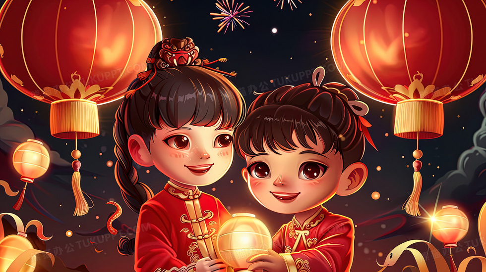 本作品内容为春节元宵逛灯会看烟花的男孩女孩插画, 格式为 jpg, 大小3 MB, 图片尺寸为2912 x 1632, 源文件无水印, 欢迎使用熊猫办公。 如认为平台内容涉嫌侵权,可通过邮件:tousu@tukuppt.com提出书面通知,我们将及时处理。
