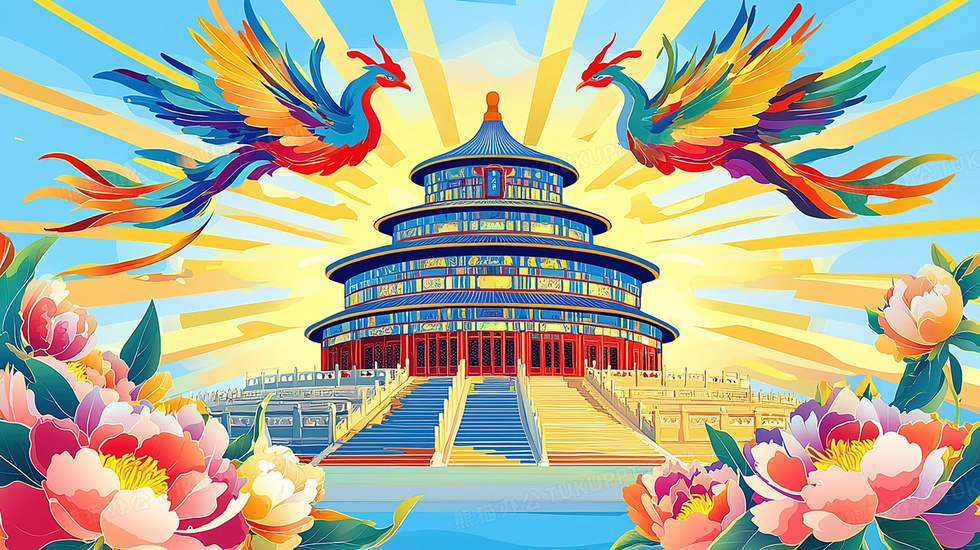 本作品内容为国庆飞翔的凤凰与天坛建筑插画, 格式为 jpg, 大小4 MB, 图片尺寸为2912 x 1632, 源文件无水印, 欢迎使用熊猫办公。 如认为平台内容涉嫌侵权,可通过邮件:tousu@tukuppt.com提出书面通知,我们将及时处理。