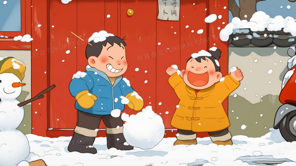 本作品内容为两个男孩在红色庭院门前打雪仗插画, 格式为 jpg, 大小5 MB, 图片尺寸为2912 x 1632, 源文件无水印, 欢迎使用熊猫办公。 如认为平台内容涉嫌侵权,可通过邮件:tousu@tukuppt.com提出书面通知,我们将及时处理。