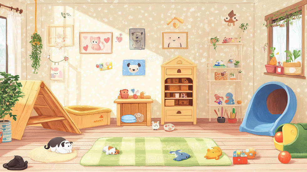 本作品内容为卡通风宠物专属空间插画, 格式为 jpg, 大小4 MB, 图片尺寸为2912 x 1632, 源文件无水印, 欢迎使用熊猫办公。 如认为平台内容涉嫌侵权,可通过邮件:tousu@tukuppt.com提出书面通知,我们将及时处理。