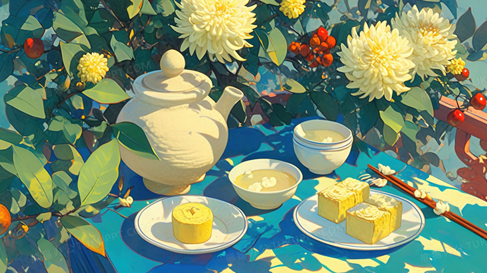 本作品内容为桌上的菊花养生茶水糕点插画, 格式为 jpg, 大小3 MB, 图片尺寸为2912 x 1632, 源文件无水印, 欢迎使用熊猫办公。 如认为平台内容涉嫌侵权,可通过邮件:tousu@tukuppt.com提出书面通知,我们将及时处理。