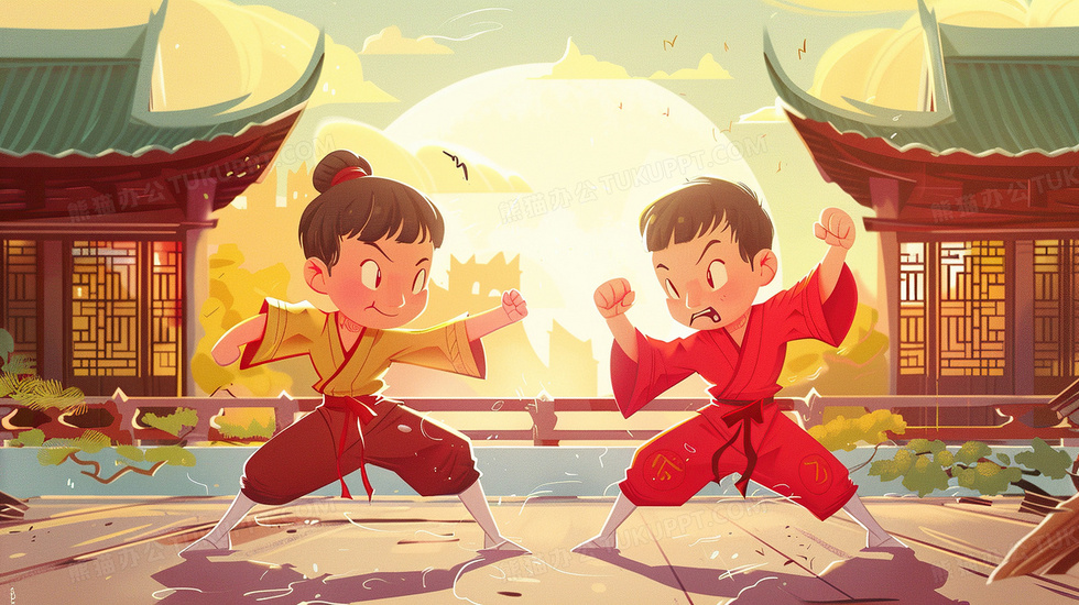 本作品内容为卡通中国风建筑武功武侠插画, 格式为 jpg, 大小4 MB, 图片尺寸为2912 x 1632, 源文件无水印, 欢迎使用熊猫办公。 如认为平台内容涉嫌侵权,可通过邮件:tousu@tukuppt.com提出书面通知,我们将及时处理。