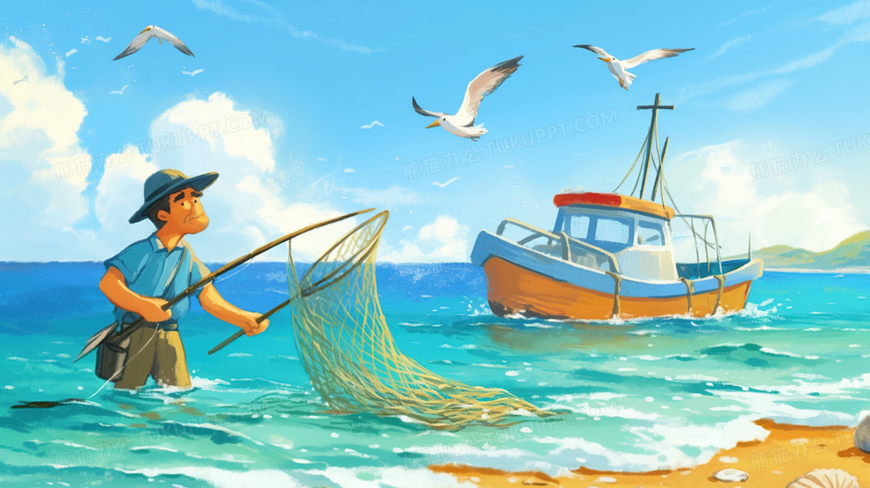 本作品内容为出海撒网捕鱼的渔民伯伯插画, 格式为 jpg, 大小3 MB, 图片尺寸为2912 x 1632, 源文件无水印, 欢迎使用熊猫办公。 如认为平台内容涉嫌侵权,可通过邮件:tousu@tukuppt.com提出书面通知,我们将及时处理。