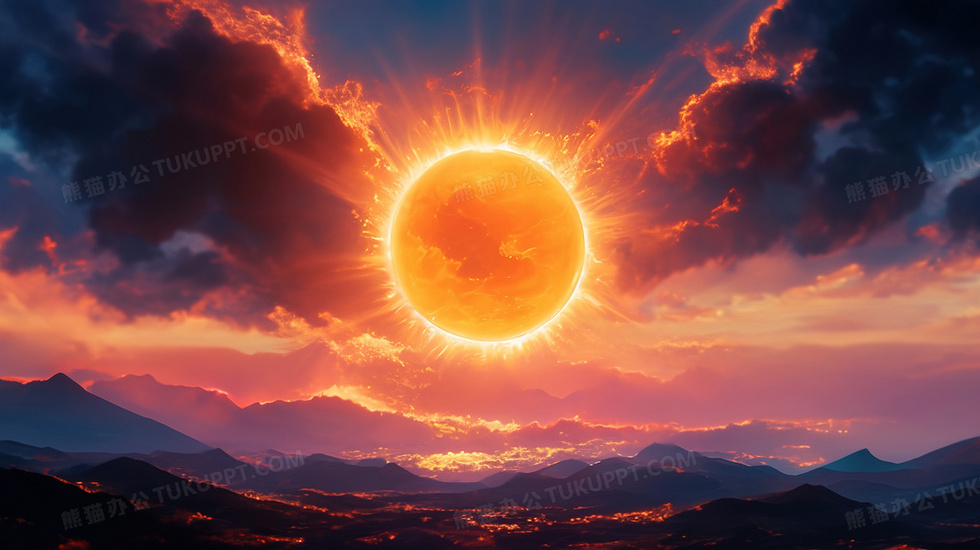 本作品内容为日食天空山水景色插画, 格式为 jpg, 大小2 MB, 图片尺寸为2912 x 1632, 源文件无水印, 欢迎使用熊猫办公。 如认为平台内容涉嫌侵权,可通过邮件:tousu@tukuppt.com提出书面通知,我们将及时处理。