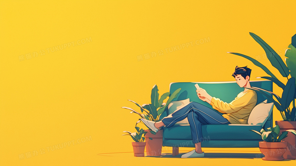 本作品内容为卡通男孩玩手机背景, 格式为 jpg, 大小3 MB, 图片尺寸为2912 x 1632, 作品中背景图片无需修改, 源文件无水印,可以直接使用, 欢迎使用熊猫办公。 如认为平台内容涉嫌侵权,可通过邮件:tousu@tukuppt.com提出书面通知,我们将及时处理。