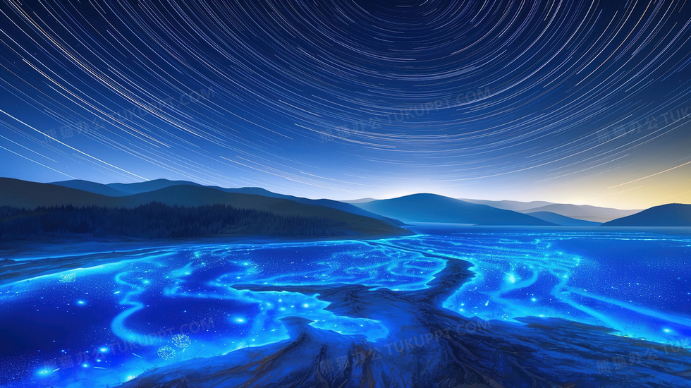 本作品内容为蓝色海边延时摄影星空美景插画, 格式为 jpg, 大小4 MB, 图片尺寸为2912 x 1632, 源文件无水印, 欢迎使用熊猫办公。 如认为平台内容涉嫌侵权,可通过邮件:tousu@tukuppt.com提出书面通知,我们将及时处理。