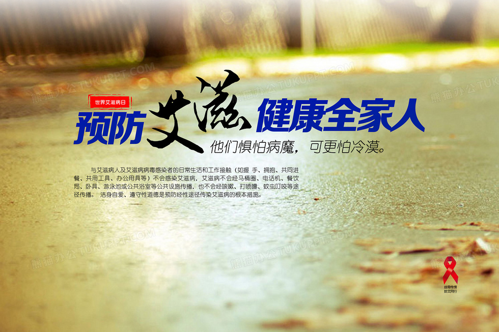 本作品内容为预防艾滋公益广告, 格式为 psd, 图片尺寸为3543 x 2362, 作品中背景图片无需修改, 源文件无水印,可以直接使用, 欢迎使用熊猫办公。 如认为平台内容涉嫌侵权,可通过邮件:tousu@tukuppt.com提出书面通知,我们将及时处理。