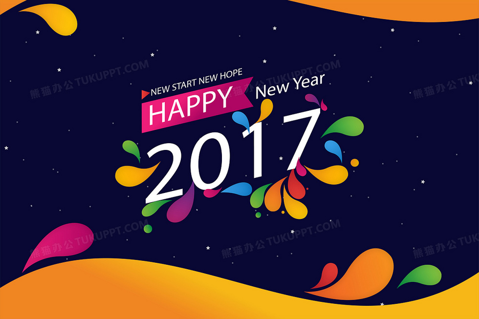 本作品内容为2017彩色新年快乐海报背景素材, 格式为 ai, 图片尺寸为5001 x 3334, 作品中背景图片无需修改, 源文件无水印,可以直接使用, 欢迎使用熊猫办公。 如认为平台内容涉嫌侵权,可通过邮件:tousu@tukuppt.com提出书面通知,我们将及时处理。