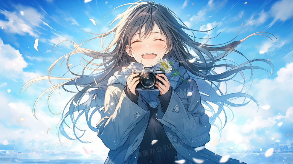 本作品内容为摄影社团拿着相机在蓝天下拍照的女孩插画, 格式为 jpg, 大小4 MB, 图片尺寸为2912 x 1632, 源文件无水印, 欢迎使用熊猫办公。 如认为平台内容涉嫌侵权,可通过邮件:tousu@tukuppt.com提出书面通知,我们将及时处理。