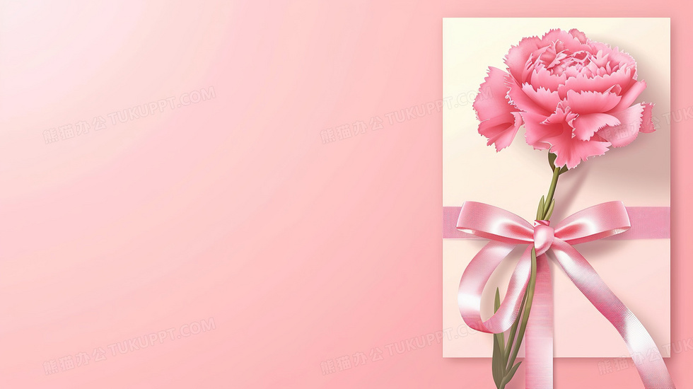 本作品内容为粉色唯美康乃馨卡片母亲节祝福背景图, 格式为 jpg, 大小5 MB, 图片尺寸为2912 x 1632, 作品中背景图片无需修改, 源文件无水印,可以直接使用, 欢迎使用熊猫办公。 如认为平台内容涉嫌侵权,可通过邮件:tousu@tukuppt.com提出书面通知,我们将及时处理。