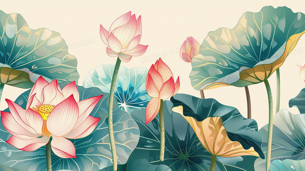 本作品内容为夏日唯美池塘莲花插画, 格式为 jpg, 大小4 MB, 图片尺寸为2912 x 1632, 源文件无水印, 欢迎使用熊猫办公。 如认为平台内容涉嫌侵权,可通过邮件:tousu@tukuppt.com提出书面通知,我们将及时处理。