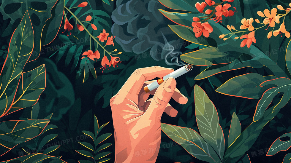 本作品内容为手拿香烟植物花卉插画, 格式为 jpg, 大小4 MB, 图片尺寸为2912 x 1632, 源文件无水印, 欢迎使用熊猫办公。 如认为平台内容涉嫌侵权,可通过邮件:tousu@tukuppt.com提出书面通知,我们将及时处理。