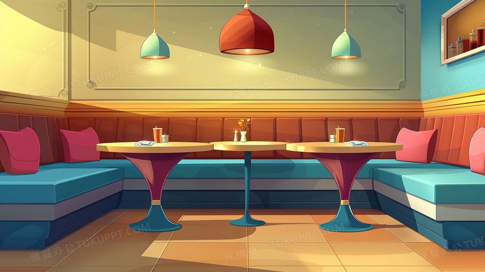 本作品内容为整齐安静的聚会包间插画, 格式为 jpg, 大小2 MB, 图片尺寸为2912 x 1632, 源文件无水印, 欢迎使用熊猫办公。 如认为平台内容涉嫌侵权,可通过邮件:tousu@tukuppt.com提出书面通知,我们将及时处理。