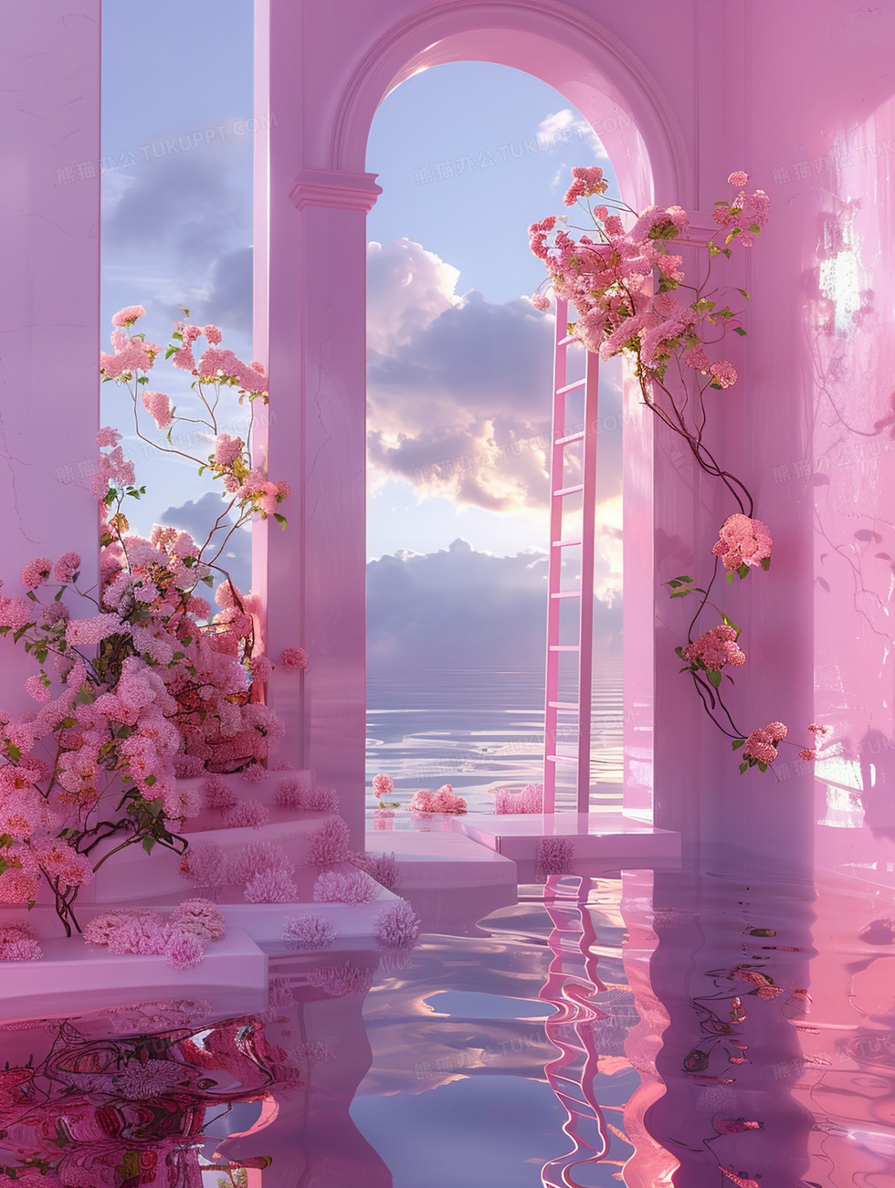 本作品内容为3D湖面上的粉色花朵装饰拱门梦幻场景插画, 格式为 jpg, 大小3 MB, 图片尺寸为1856 x 2464, 源文件无水印, 欢迎使用熊猫办公。 如认为平台内容涉嫌侵权,可通过邮件:tousu@tukuppt.com提出书面通知,我们将及时处理。
