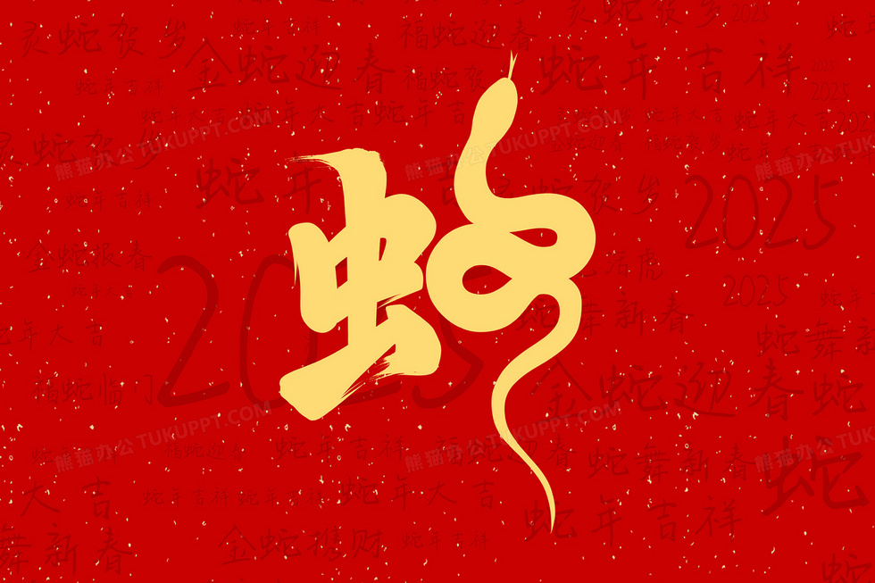 本作品内容为红色简约2025年蛇年创意红金文字插画, 格式为 psd, 大小23 MB, 请使用软件PhotoShop(CC)打开, 源文件无水印, 欢迎使用熊猫办公。 如认为平台内容涉嫌侵权,可通过邮件:tousu@tukuppt.com提出书面通知,我们将及时处理。