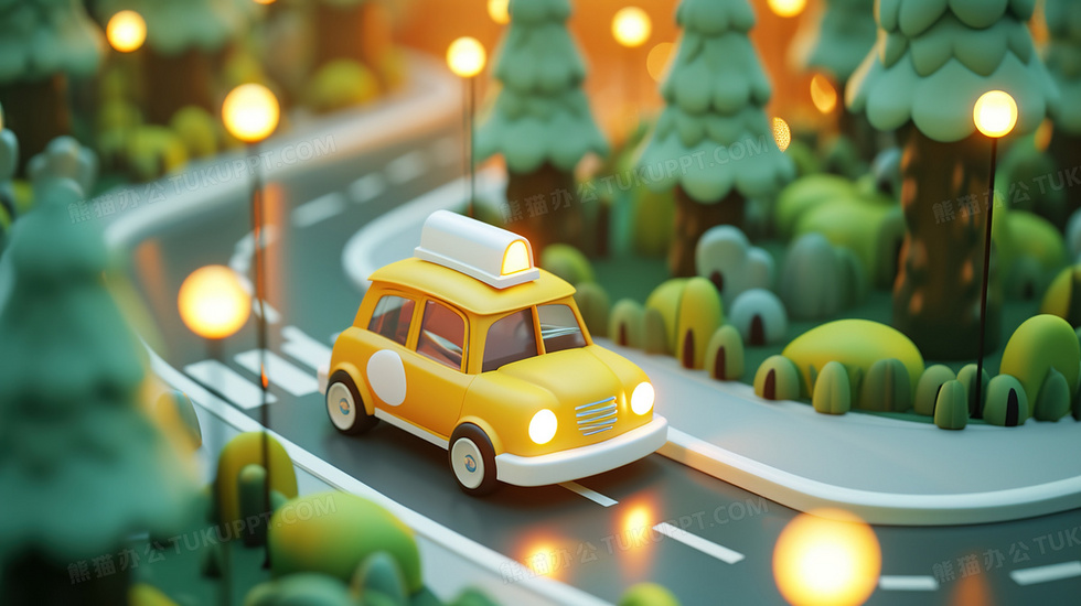 本作品内容为3D行驶在山林公路的黄色小轿车插画, 格式为 jpg, 大小2 MB, 图片尺寸为2912 x 1632, 源文件无水印, 欢迎使用熊猫办公。 如认为平台内容涉嫌侵权,可通过邮件:tousu@tukuppt.com提出书面通知,我们将及时处理。