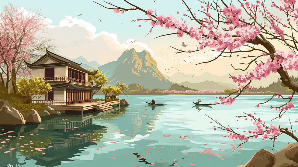 本作品内容为中国风古典园林山水风景插画, 格式为 jpg, 大小3 MB, 图片尺寸为2912 x 1632, 源文件无水印, 欢迎使用熊猫办公。 如认为平台内容涉嫌侵权,可通过邮件:tousu@tukuppt.com提出书面通知,我们将及时处理。