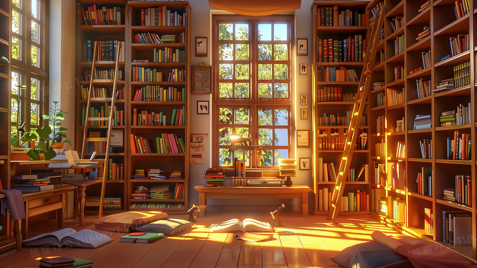 本作品内容为安静的图书馆书房场景插画, 格式为 jpg, 大小3 MB, 图片尺寸为2912 x 1632, 源文件无水印, 欢迎使用熊猫办公。 如认为平台内容涉嫌侵权,可通过邮件:tousu@tukuppt.com提出书面通知,我们将及时处理。
