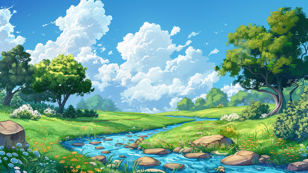 本作品内容为春分卡通蓝天草地森林小溪插画, 格式为 jpg, 大小4 MB, 图片尺寸为2912 x 1632, 源文件无水印, 欢迎使用熊猫办公。 如认为平台内容涉嫌侵权,可通过邮件:tousu@tukuppt.com提出书面通知,我们将及时处理。