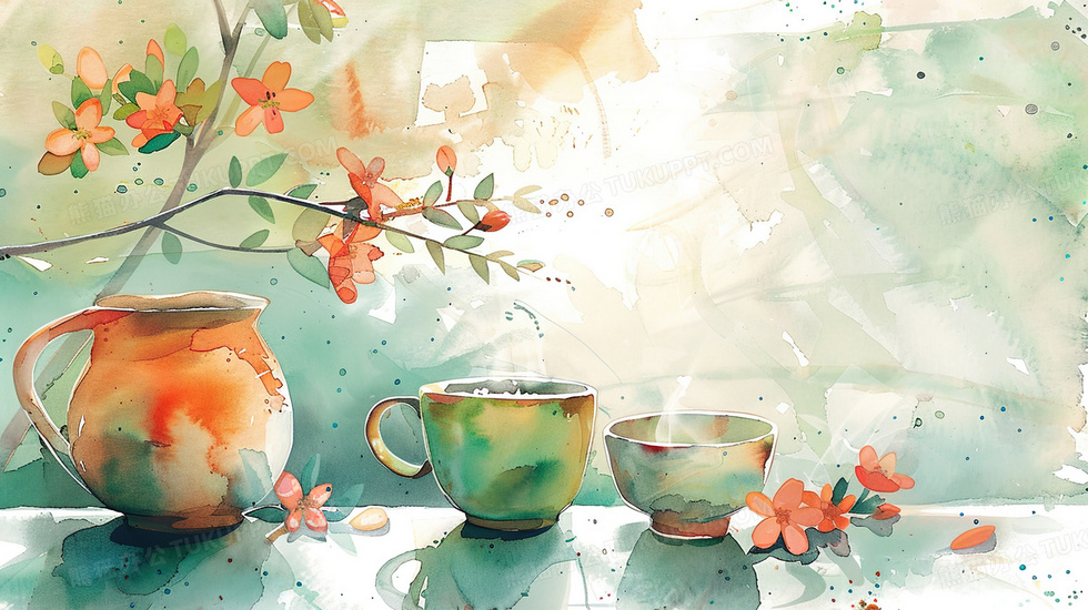 本作品内容为鲜花树枝下摆放着的春茶插画, 格式为 jpg, 大小3 MB, 图片尺寸为2912 x 1632, 源文件无水印, 欢迎使用熊猫办公。 如认为平台内容涉嫌侵权,可通过邮件:tousu@tukuppt.com提出书面通知,我们将及时处理。