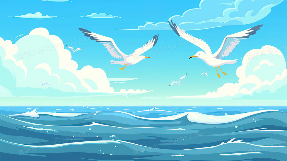 本作品内容为唯美蓝天白云海鸥大海插画, 格式为 jpg, 大小2 MB, 图片尺寸为2912 x 1632, 源文件无水印, 欢迎使用熊猫办公。 如认为平台内容涉嫌侵权,可通过邮件:tousu@tukuppt.com提出书面通知,我们将及时处理。